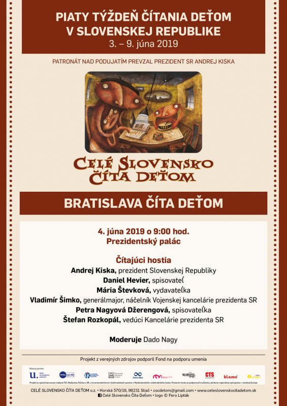 V utorok 4. 6. 2019 pokračoval projekt programom v Prezidentskom paláci. Deti privítal vedúci Kancelárie prezidenta SR Štefan Rozkopál, čítal im spisovateľ Daniel Hevier, vydavateľka Mária Števková, spisovateľka Petra Nagyová Džerengová a generálmajor Vladimír Šimko - náčelník Vojenskej kancelárie prezidenta SR. Okrem krásnych príbehov v interpretácii vzácnych hostí nás čakalo v nádherných priestoroch Prezidentského paláca i milé prekvapenie. Deti prišiel pozdraviť prezident Slovenskej republiky Andrej Kiska a prečítal príbeh z knihy : Antoine de Saint -Exupéry Malý princ.