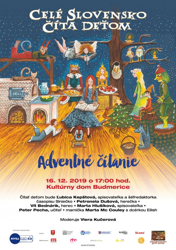V pondelok 16. decembra 2019 sme v Budmericiach ukončili sériu adventných čítaní. Vo sviatočnej atmosfére vyzdobeného kultúrneho domu stromčekom a adventným vencom, čítali spisovateľky Ľubica Kepštová a Marta Hlušíková, herec Vít Bednárik, bábkoherečka Petronela Dušová aj pán učiteľ Peter