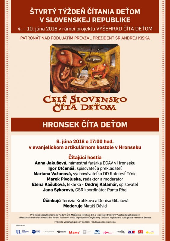 Počas 4. týždňa čítania deťom v Slovenskej republike, ktorý v rámci medzinárodného projektu VYŠEHRAD ČÍTA DEŤOM pripravilo občianske združenie Celé Slovensko číta deťom, sa osobnosti umeleckého i spoločenského života zastavili v stredu 6. júna aj v evanjelickom artikulárnom kostole v Hronseku pri Banskej Bystrici.