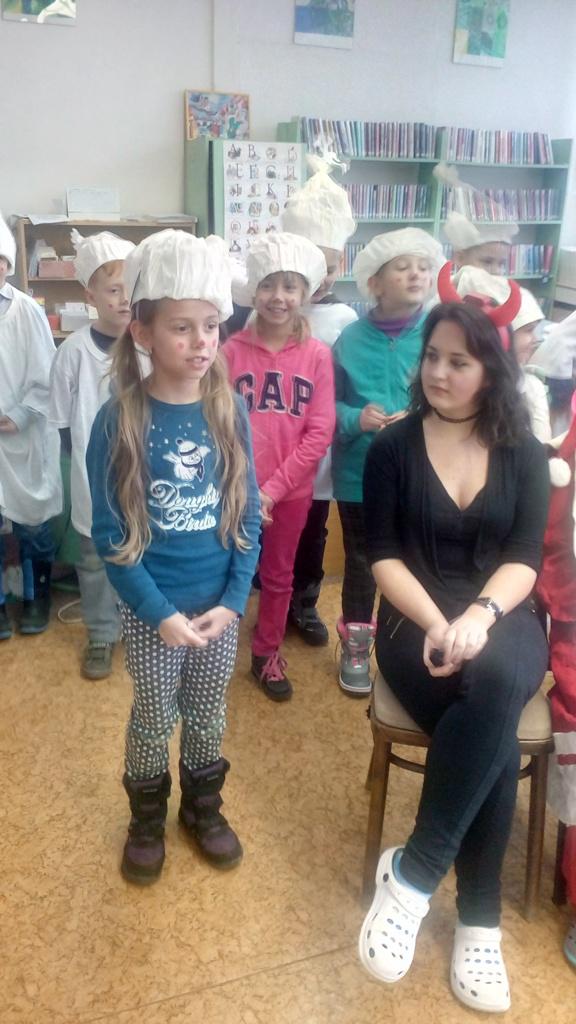 3.12.2015 v knižnici zišli žiaci 2.B triedy (25 detí) a hosťom bola Mgr.Viera Papáčová (zástupkyňa pre I.stupeň). Rozhovorila sa o čítaní, o svojom deststve aj o obľúbených knihách a vianočných sviatkoch. Prečítala deťom pekné príbehy o mikulášovi a vankúšiku plnom snov.