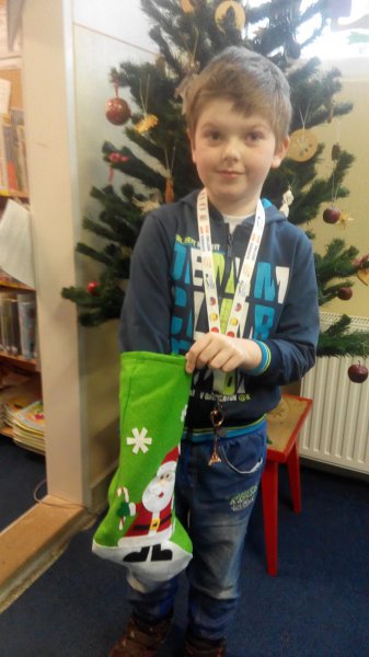 Mgr.Jozef Semanič-zástupca pre II.stupeň). V knižnici sa čítalo, recitovalo,spievalo a rozprávalo o mikulášovi a vianočných zvykoch a tradíciách. Na záver sa uhádnuté hádanky z ponožky,premenilo na cukríky,ktoré rozdal Mikuláš.