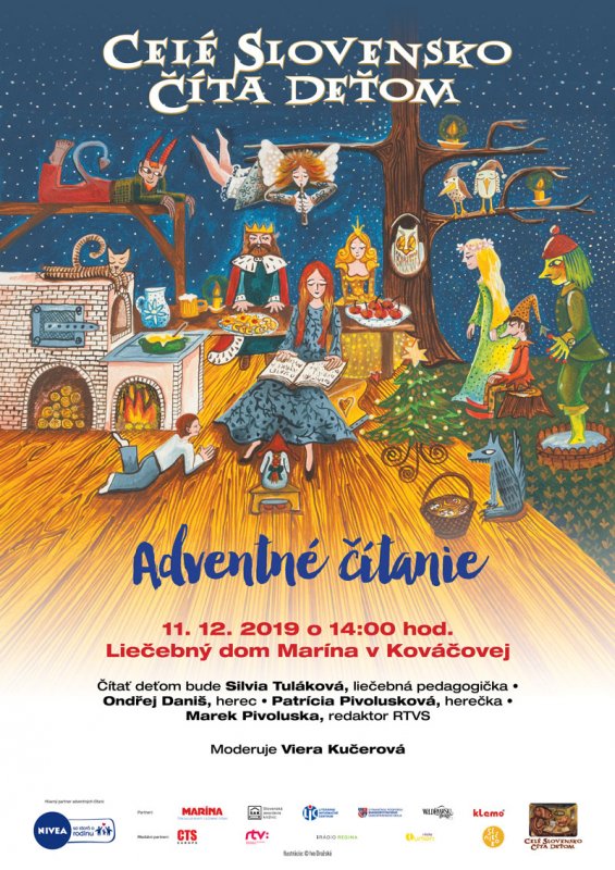 Adventné čítanie pokračovalo 11. decembra 2019 v Špecializovanom liečebnom ústave Marína v Kováčovej. Opäť nás tu privítali s otvorenou náručou, za čo patrí poďakovanie Mgr.art. Kataríne Beličkovej a MUDr. Kataríne Recabarrenovej. A keďže „Marína „ oslavovala v tomto čarovnom vianočnom čase aj meniny- 8.12.2019 - našu kytičku k sviatku sme uvili z krásnych rozprávkových príbehov, ktoré deťom prečítali hostia: Ondřej Daniš, Patrícia Pivolusková, Silvia Tuláková a sviatočnú atmosféru doplnilo vystúpenie DFS Poľana z Očovej. Programom sprevádzala Viera Kučerová.