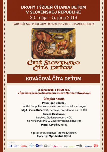 2. júna popoludní,  od 14:00 hod., sme čítali deťom v Špecializovanom liečebnom ústave Marína v Kováčovej.