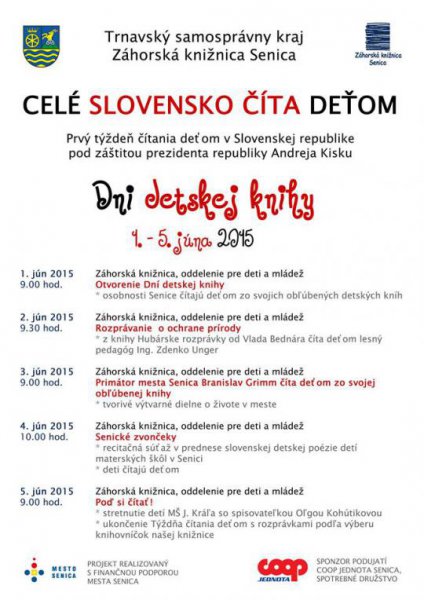 Záhorská knižnica v Senici každoročne pripravuje pri príležitosti Medzinárodného dňa detí sériu podujatí s názvom Dni detskej knihy. A keďže sa tento rok zapojila do projektu Celé Slovensko číta deťom, niesli sa všetky podujatia v duchu motta „Poď, budem ti čítať!“