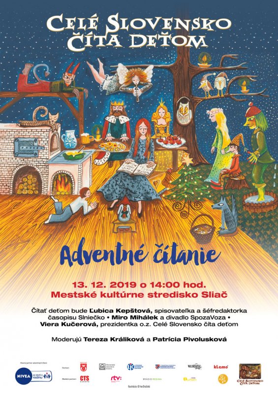 V piatok 13.decembra sme popoludní čítali aj deťom zo školskej družiny ZŠ na Sliači. V Mestskom kultúrnom stredisku Sliač prváčikom a druhákom čítala spisovateľka Ľubica Kepštová, spievala Terezka Králiková, divadielko zahral Mirko Mihálek a programom sprevádzala Patrícia Pivolusková. Deti si užívali hlavne dramatizované čítanie rozprávok Márie Ďuríčkovej, úžasne sa zapájali a Janka Polienka aj kolísali a uspávali. Domov si okrem krásnych zážitkov odniesli aj vianočné vydanie časopisu Slniečko a záložky do kníh.