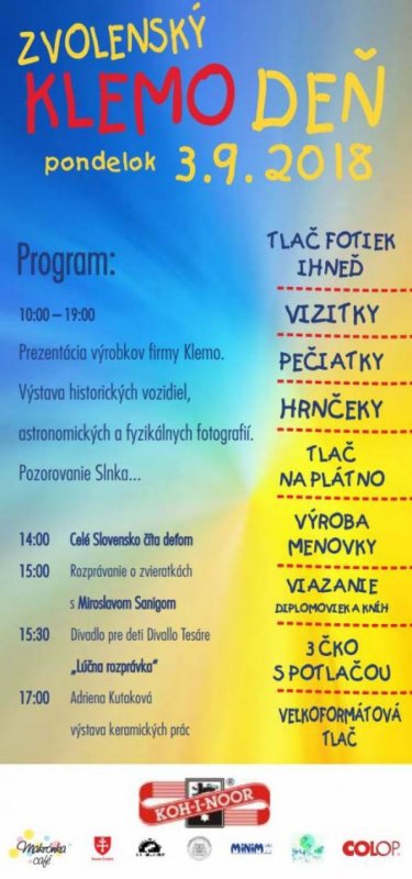 Milí naši priaznivci .Pripájame pár fotiek z akcie , ktorá mala názov "Zvolenský KLEMO DEŇ " a konala sa 03.09.2018 v Parku zabudnutých susedov na Tehelnej ulici vo Zvolene.