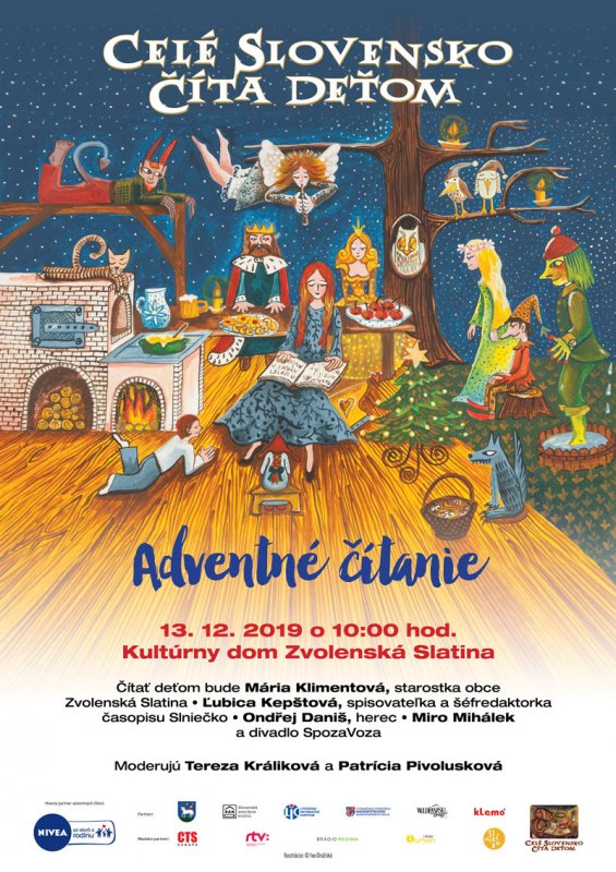 Magický dátum - piatok 13. decembra a sviatok Lucie, patril v rámci adventného čítania slávnym rodákom zo Zvolenskej Slatiny. Narodila sa tu pred 100 rokmi spisovateľka Mária Ďuríčková. Okrem krásnych kníh pre deti svoj život spojila aj s časopisom Slniečko. A slniečko svietilo v piatok 13. decembra vo Zvolenskej Slatine aj v podobe rozprávania Ľubky Kepštovej a zdramatizovaného čítania herca Mirka Miháleka z divala SpozaVoza. Ten prečítal slatinským školákom Janka Polienka od Márie Ďuríčkovej a pani starostka obce, Mária Klimentová, zas pridala príbeh z knihy Danka a Janka. Herec Ondřej Daniš zahral a zaspieval vlastný text o Rinaldovi Oláhovi, slávnom huslistovi zo Slatiny. A aj keď zlyhala technika – v piatok 13. sa to niekedy stáva, nezaskočilo to moderátorky Terezku Králikovú a Patríciu Pivoluskovú a na záver programu po vinšoch detí, zaspievali spoločne s Ondřejom naživo s gitarou krásnu vianočnú pieseň. Adventný veniec uvitý z príbehov kníh Márie Ďuríčkovej v jej rodnej dedine naplno zažiaril.