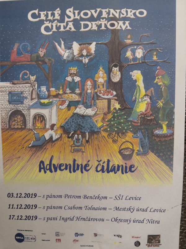 Dňa 11.12 sme mali adventné čítanie s viceprimátorom mesta Levice s Csabom Tolnaiom, ktorý žiakom porozprával o Betleheme, vianočných zvykoch v iných krajinách a prečítal im rozprávky o Vianociach. Žiaci mu predniesli básničky a nakoniec sa mu odvďačili malým darčekom a veľkým potleskom.