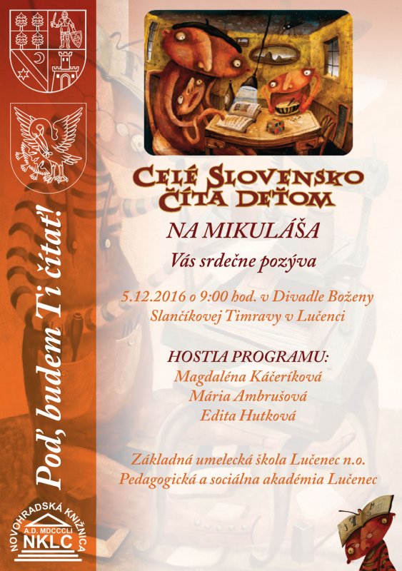 Novohradská knižnica v spolupráci s mestom Lučenec sa dňa 05.12.2016 zapojila do celoslovenskej kampane na podporu čítania pod názvom Celé Slovensko číta deťom/Lučenec číta deťom aj na Mikuláša.