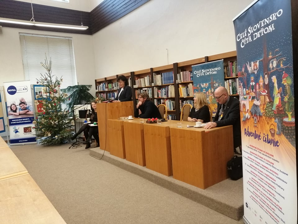9. decembra 2019 sme zrealizovali prvé „Adventné čítanie“ v Krajskej knižnici Ľ. Štúra vo Zvolene. Vo sviatočnej atmosfére deti zaujato počúvali nielen príbehy z kníh, ale aj rozprávanie o vzťahu ku knihám a k životným hodnotám. Čítať deťom prišla pani primátorka mesta Zvolen Lenka Balkovičová, ktorá v tomto roku získala ocenenie primátor roka, herec Ondřej Daniš i spisovateľ Ondrej Kalamár. Čítanie prinieslo i rozmery, ktoré v nás zanechali nezabudnuteľné dojmy. Programom sprevádzali Patrícia Pivolusková a Tereza Králiková, ktorá aj zaspievala vianočné koledy.